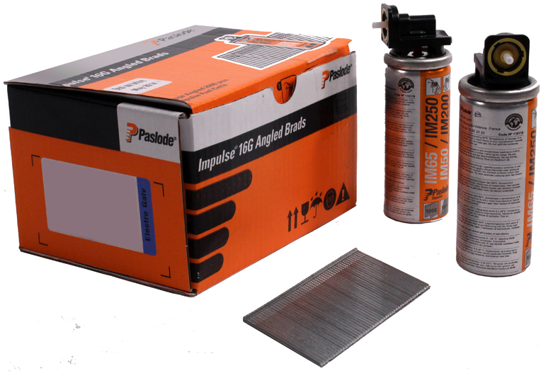 The range of IM65A & IM250A distinctive angled brad fuel packs are the proffesional's choice for cordless second fix nailing applications.
